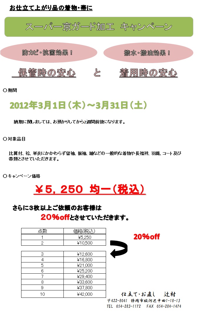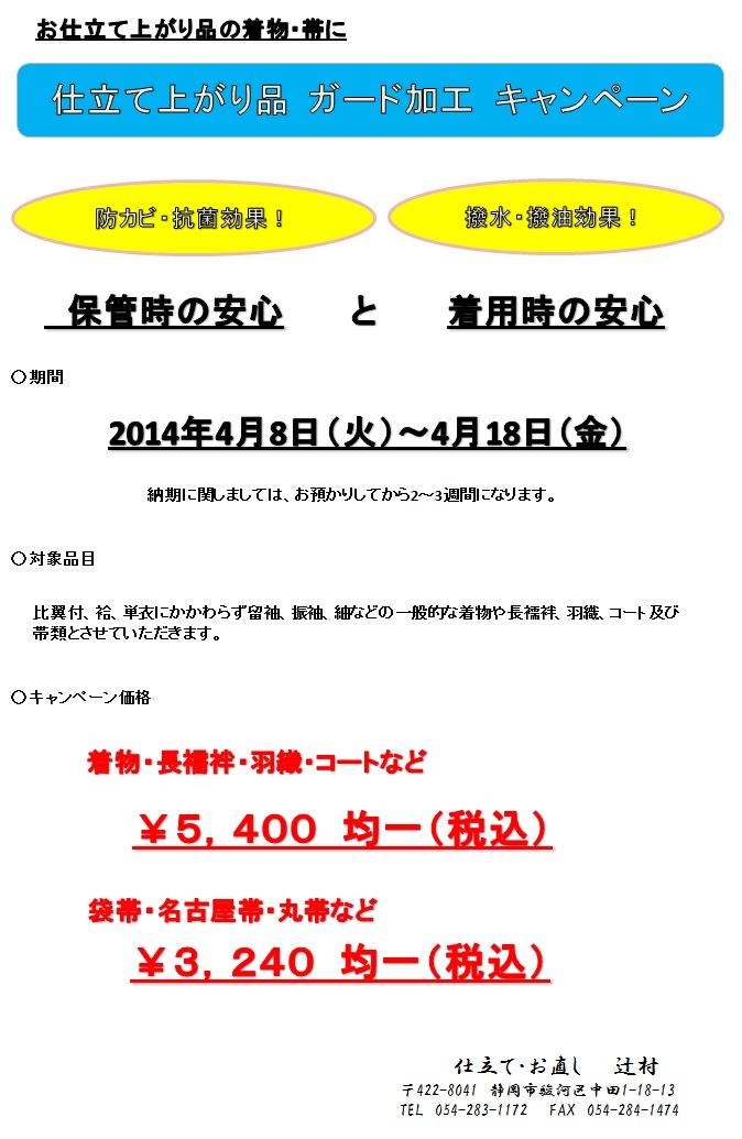 11月13日~11月21日まで、京洗い(丸洗い)&仕立て上がりガード加工のキャンペーンを行います。 |