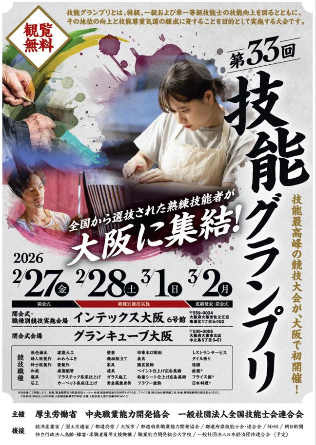 来年2~3月にかけて開催する技能グランプリ。