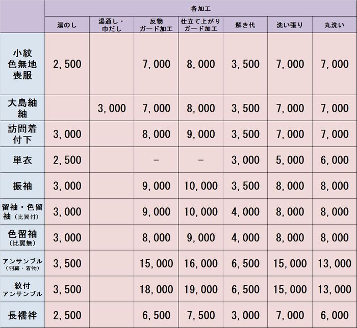 | 正絹胴裏(長襦袢用) | 7,000 |