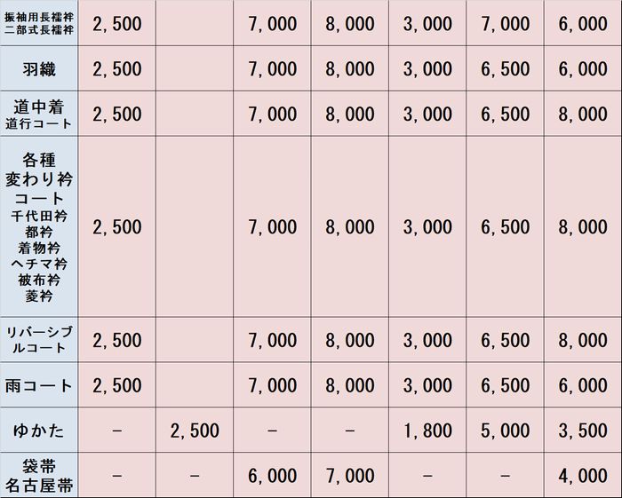| 裏衿 | 3,500 |