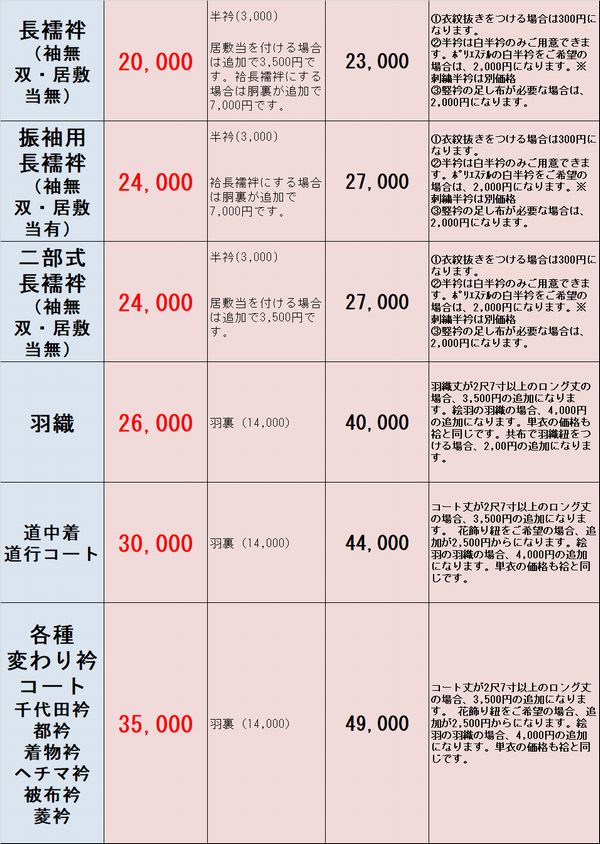 | 居敷当(長襦袢用) | 3,500 |