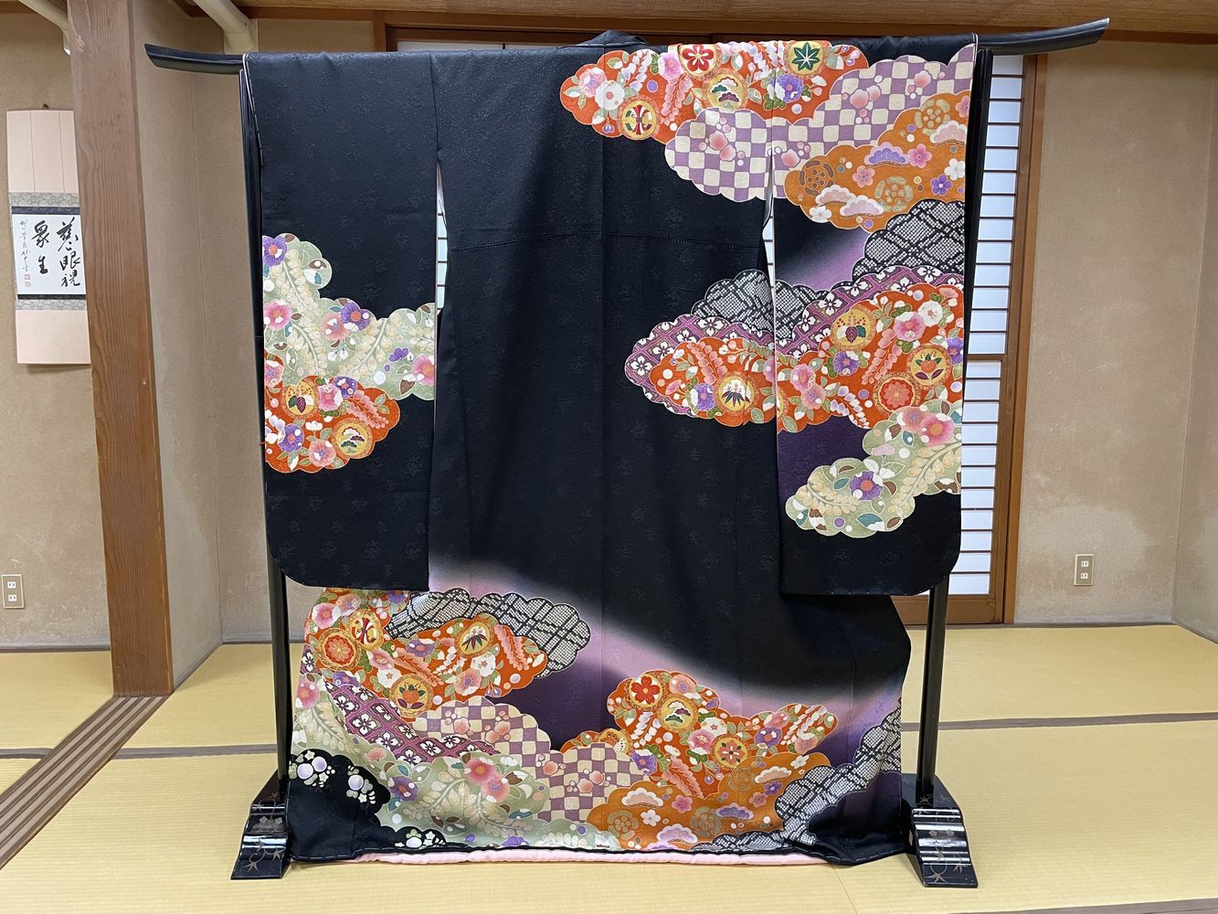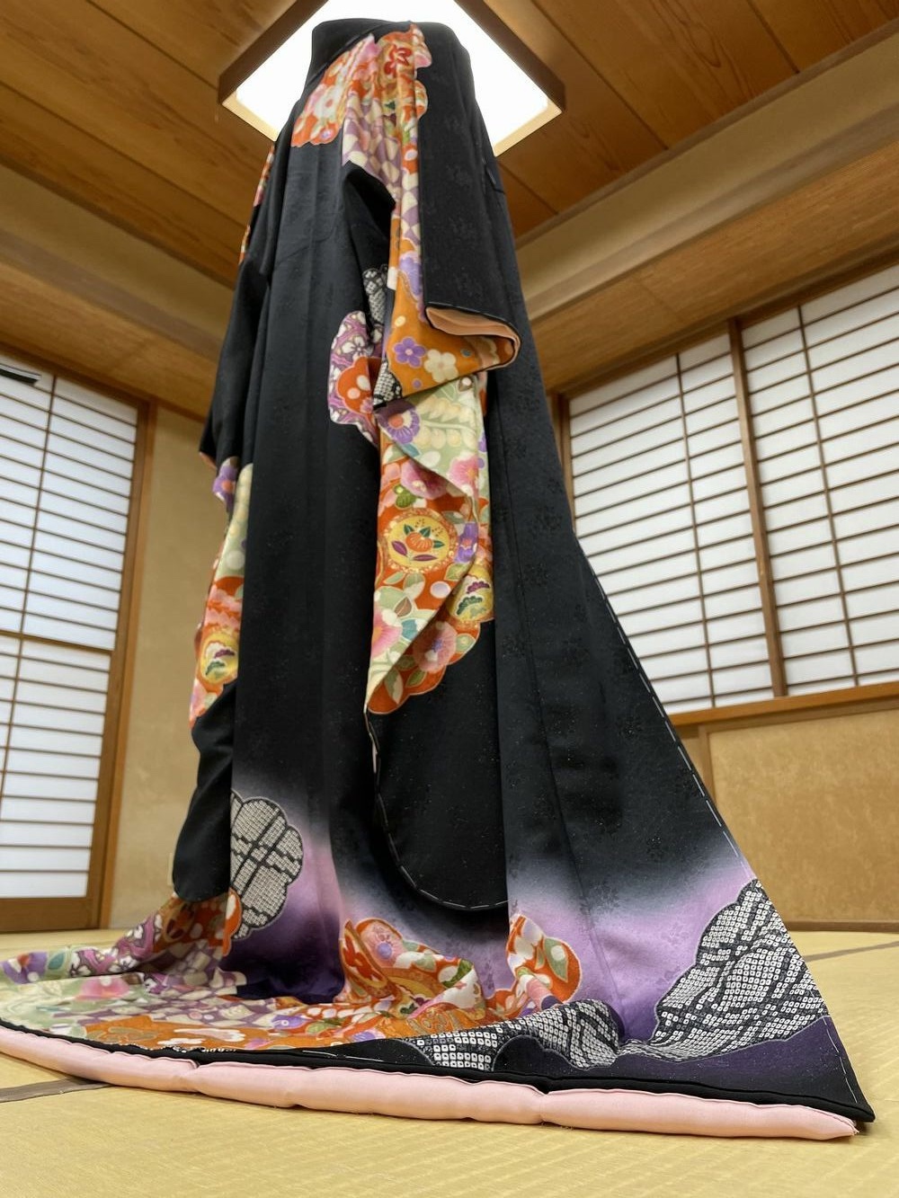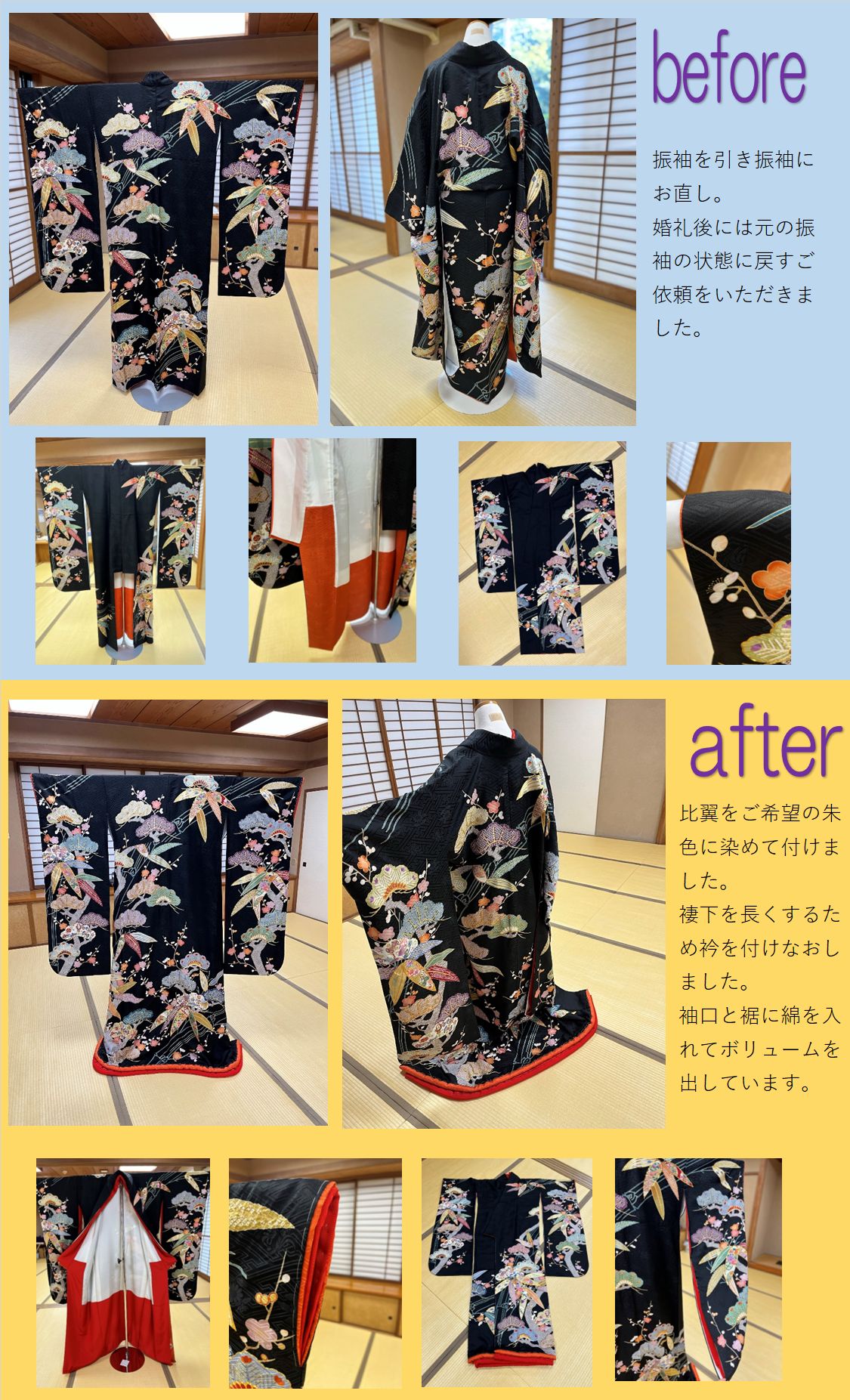 振袖を引き振袖に仕立て直すご依頼をいただきました。婚礼後は元の振袖に仕立て直しをご依頼いただく予定です。